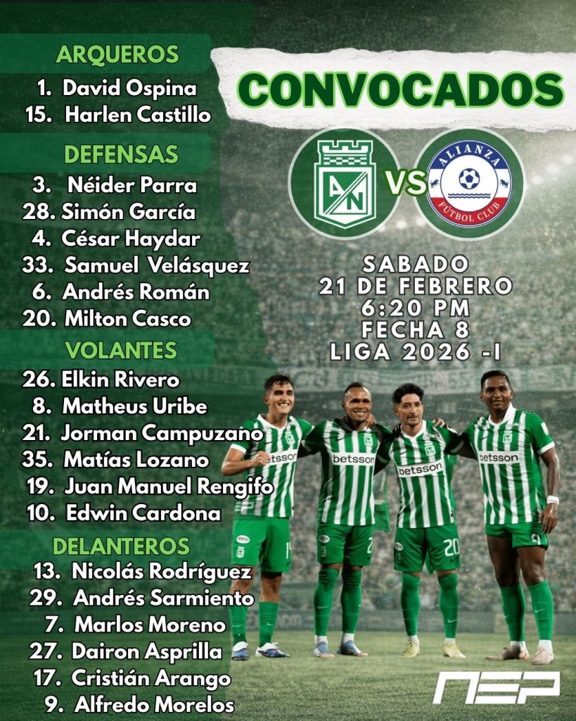 Luego de la derrota ante el Deportivo Cali, el verde de Antioquia pasó página y está ya concentrado, listo para enfrentar al colero del torneo, Alianza Valledupar. El partido se jugará esta noche (6:20 p.m.) en el estadio Atanasio Girardot y en cumplimiento de la fecha 8 de la Liga BetPlay Dimayor 2026-I del fútbol profesional colombiano.